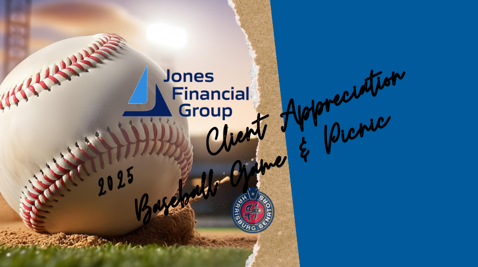 Jones Financial Group's Annual Client Appreciation Baseball Game & Picnic will be held this year on Thursday, June 5, 2025. This year plan on cheering our home team to victory as the Harrisburg Senators take on the Reading Fightin' Phils. Gates will open at 5:30 PM and the picnic will begin at 6:00 PM at the Lower Giant Pavilion. Sign-in and game day tickets will be available at our Jones Financial Group table at the main entrance. Parking passes will be available for pick up at our office after May 23rd or can be mailed up to 7 days before the game.